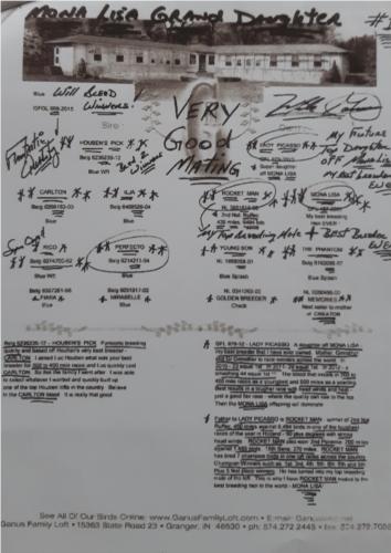Descrição: macho adquirido a Ganus Family Loft ( www.ganusfamilyloft.com), neto da fantástica reprodutora "MONA LISA", a melhor reprodutora do pombal, e do "CARLTON" (linha HOUBEN). Macho reprodutor já tem filhos a marcar na dezena, apesar de jovem.