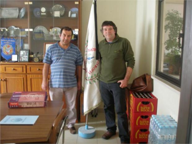 JOÃO E PEDRO NA SALA DE REUNIÕES E TROFÉUS DA S. C . RIACHOS