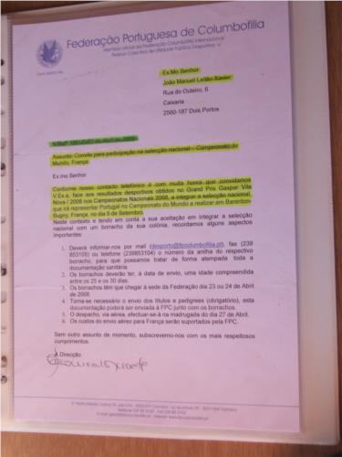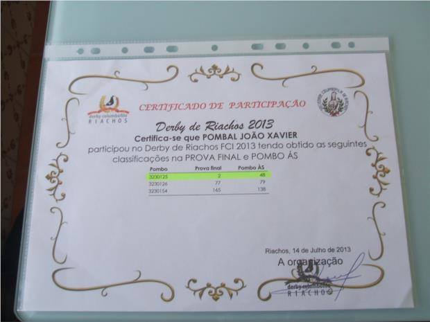 Nota: Prova muito dificil, só chegaram 43 pombos, ao pombal no dia da prova.