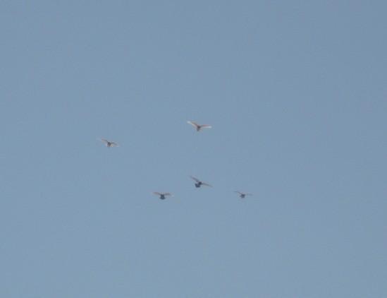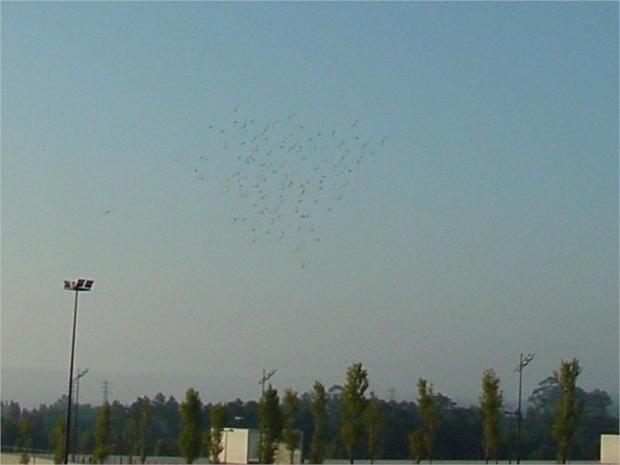 Pombos ja no ar tomando a sua orientação para Faro