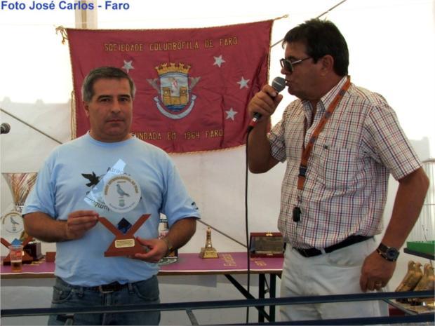José Carlos agraciado pelo Presidente da Direcção da SC Faro (Merlin Nobre), pelo seu contributo na promoção e divulgação do Derby de Faro e do desporto columbófilo em geral