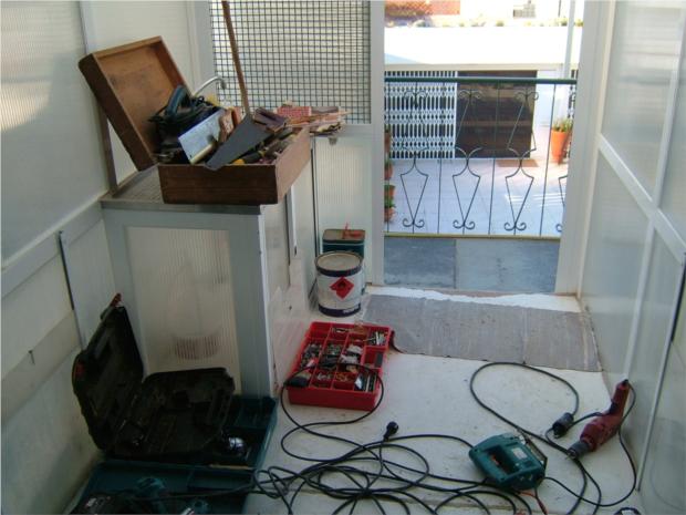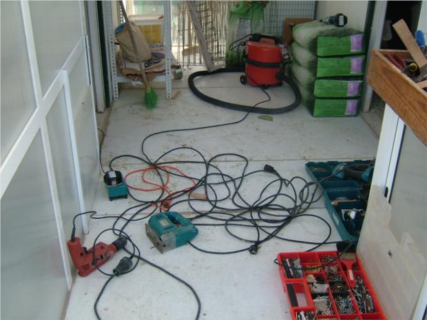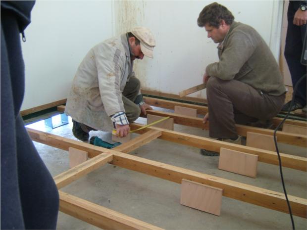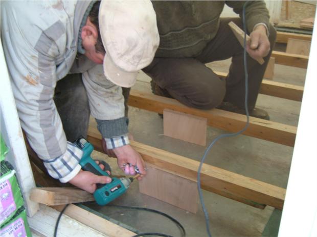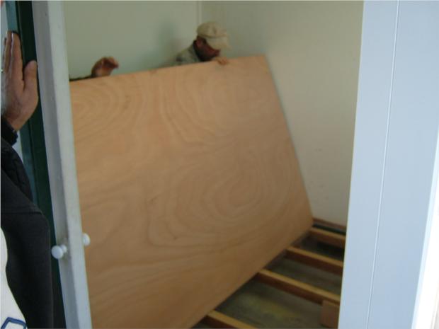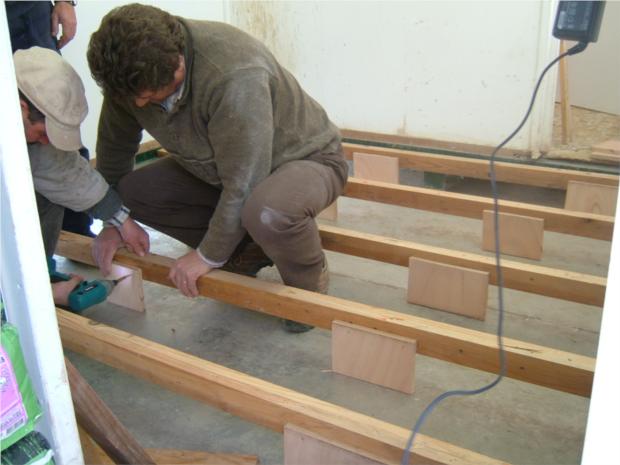 Depois do novo soalho em madeira maritima a colocação dos poleiros.