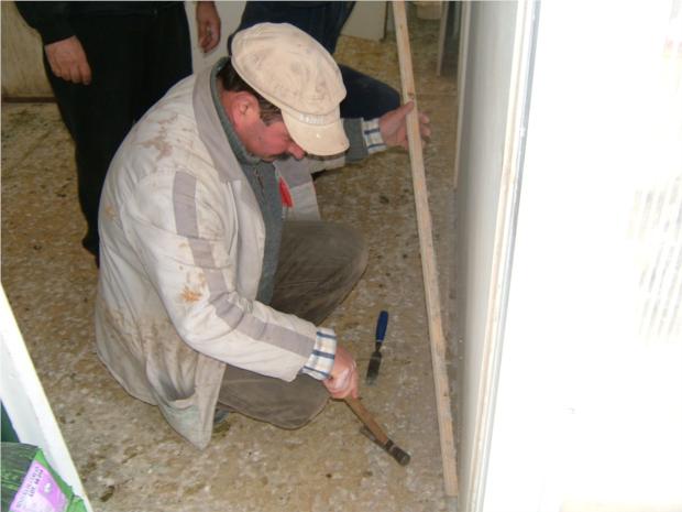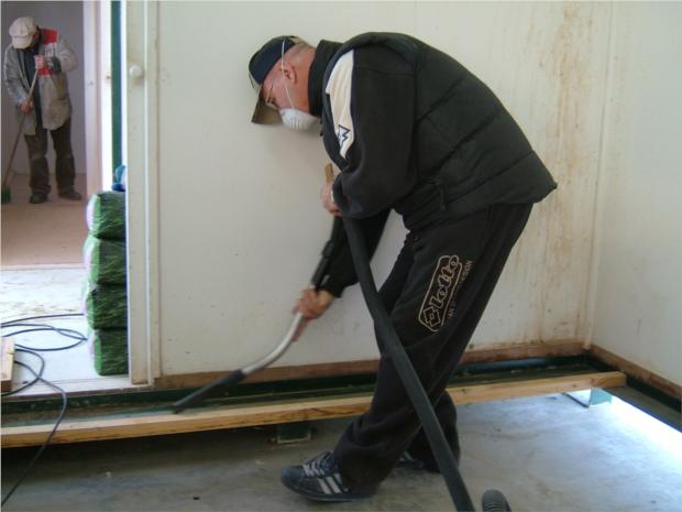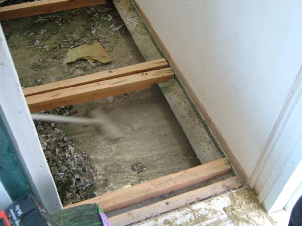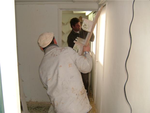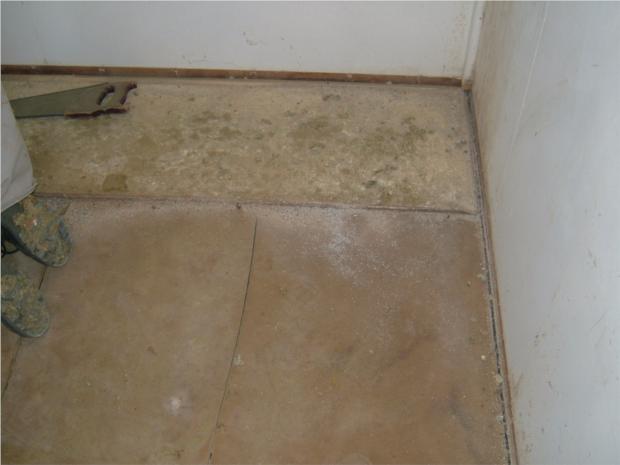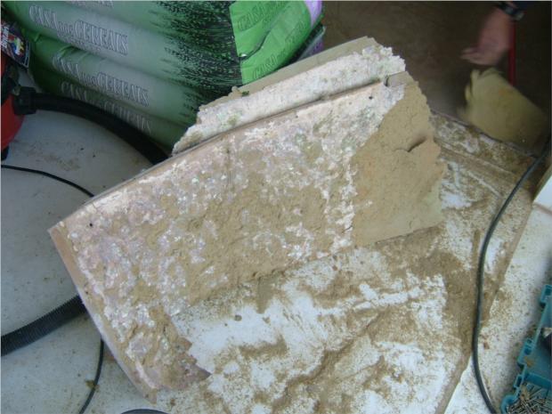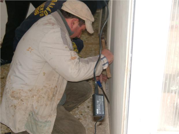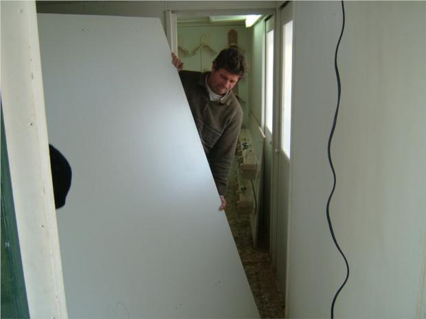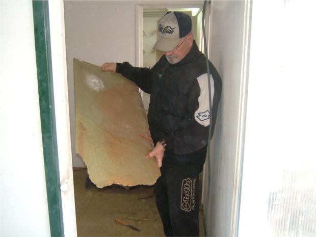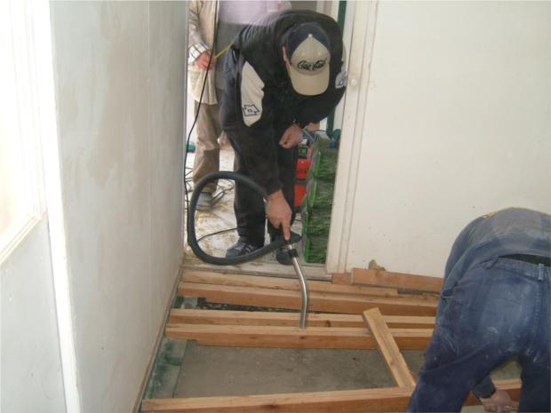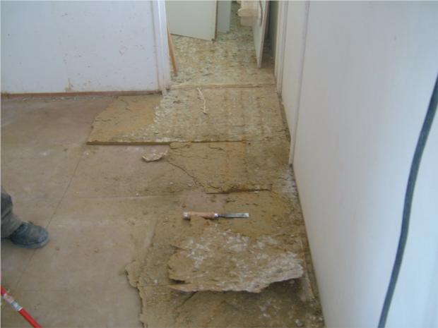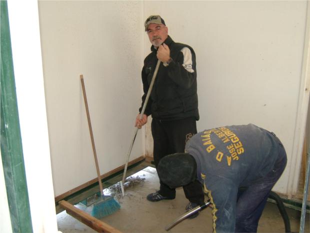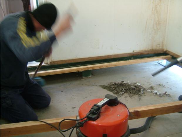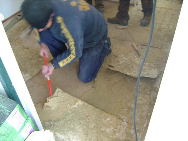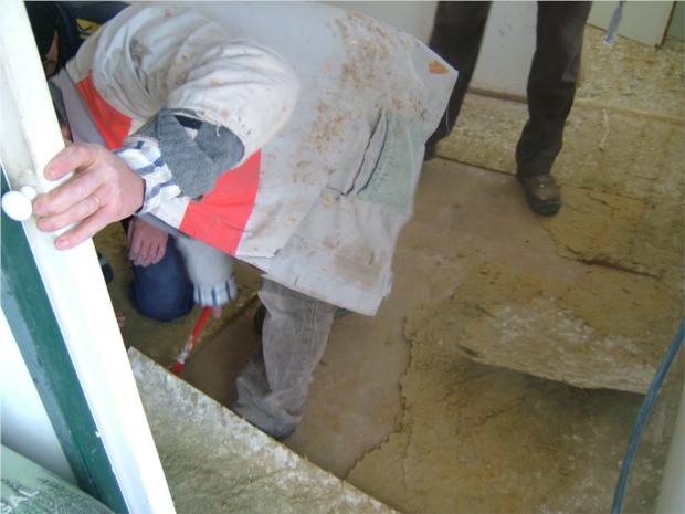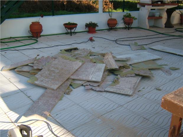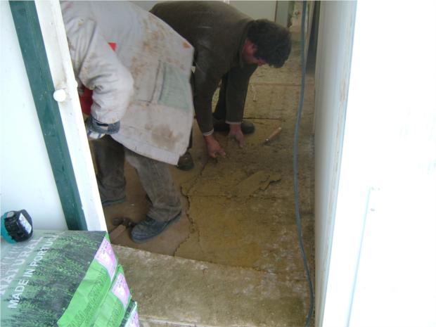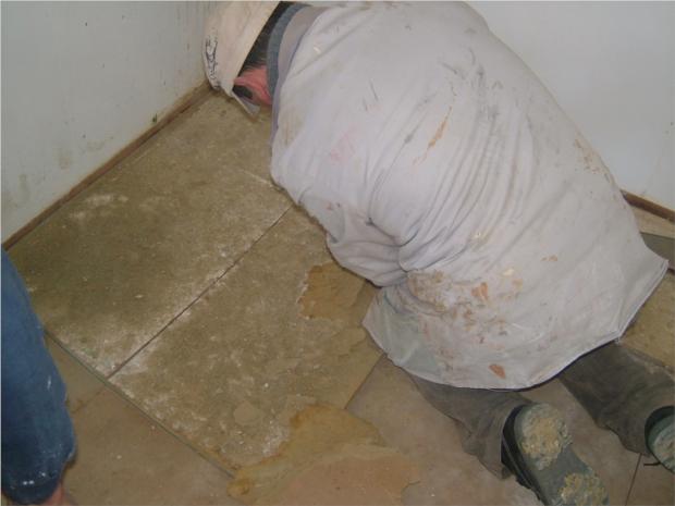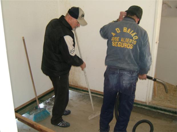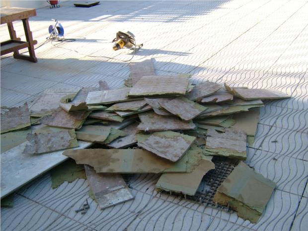 Limpeza do chão após a retirada das placas, aqui se vê a fraca sustentabilidade da base das placas.