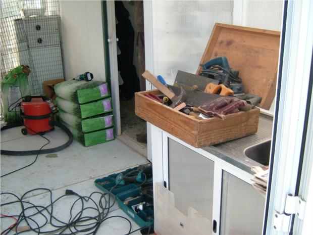 O monte de lixo, debaixo do pombal nº2 retirado, em virtude das placas MDF que serviam de soalho, não possuiam a melhor qualidade, pois estavam podres e furadas.