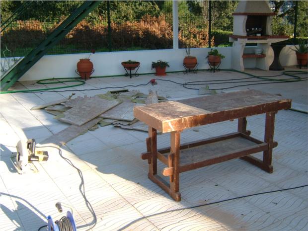 Pavimentação em piso Sintectico Anti-derrapante nos Pombais nº2 e nº3 com estrutura de suporte em madeira maritima.