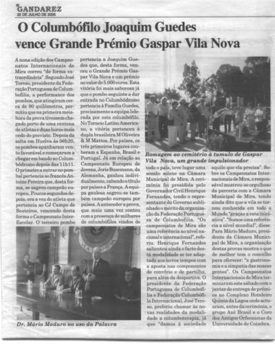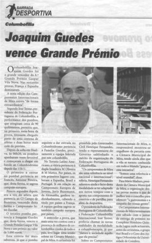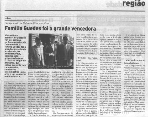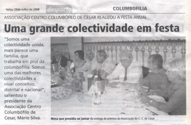 ..." O Presidente da mesa da assembleia geral considerou que o Centro Columbofilo provou mais uma vez "que é uma grande colectividade". Para tanto, agradeceu ainda a Câmara Municipal, "pagou o que prometera há anos", e à Junta de Freguesia" sempre presente quando precisamos", e à Casa do Povo, "sem a qual não seríamos o que somos". O Engº Manuel Pinho realçou ainda a presença de um convidado especial, Joaquim Guedes, "um grande campeão regional e nacional, que entra nas competicões que dão visibilidade à columbofilia e que tem ajudado as colectividades oferecendo borrachos"...