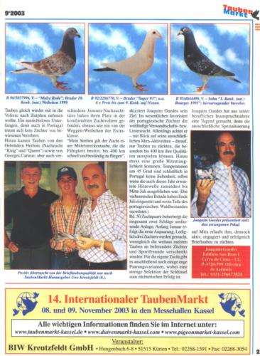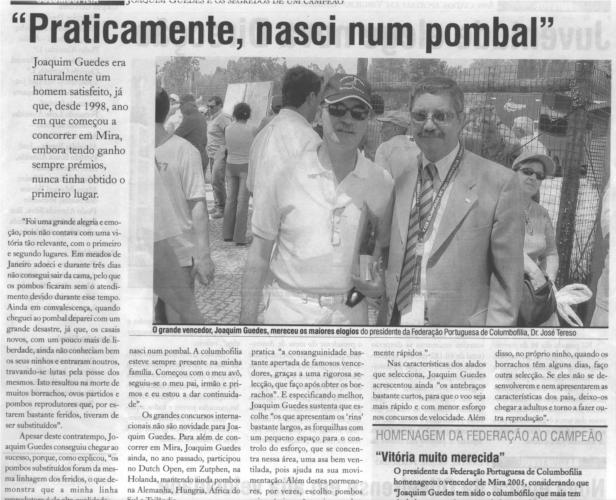 Reportagem sobre o Campeonato de Americo Pinto com pombos da minha colónia