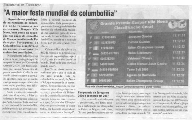 Jornal Mundo Columbófilo - Edição de 21 Agosto de 2007