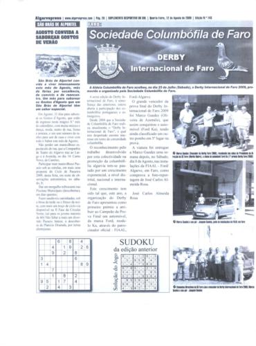 A Aldeia Columbófila de Faro acolheu, no dia 31 de Julho (Sábado), o Derby Internacional de Faro 2010, promovido e organizado pela Sociedade Columbófila de Faro.