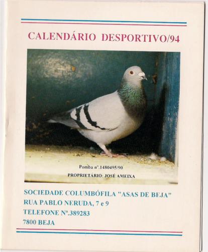 Calendário Desportivo da Soc Col Asas de Beja Esta fêmea esta no Top 5 da Colónia foi dois anos consecutivos Anilha de Ouro Geral e Anilha de Ouro Meio Fundo também Ganhou uma anilha de prata velocidade Tinha primeiros prémios de Velocidade, Meio Fundo e Fundo Foi das Melhores sem duvida
