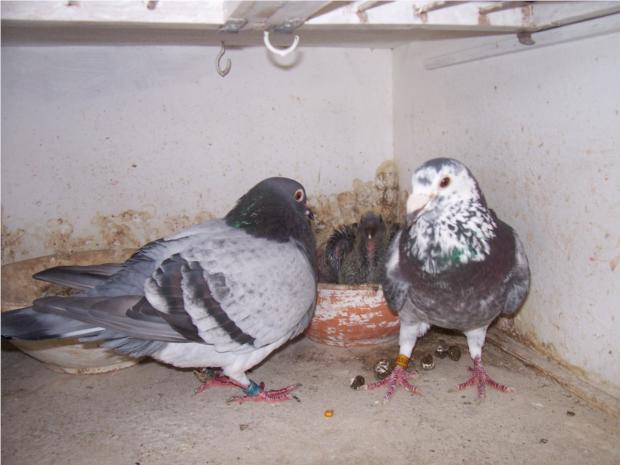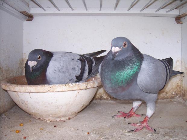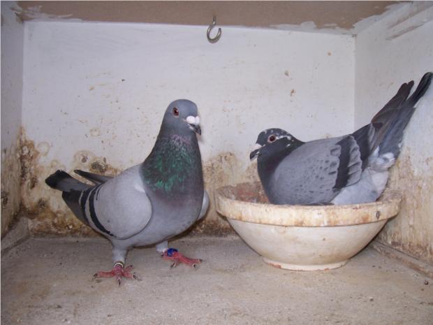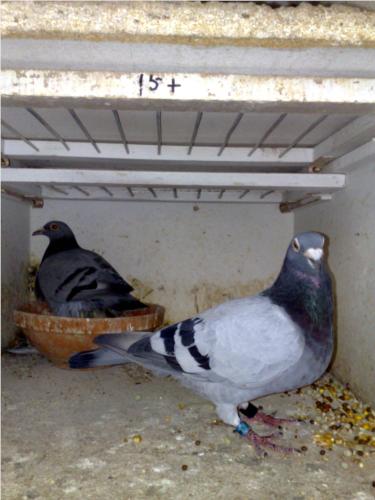 MACHO AZUL 4050659/04 FILHO PINTO PRIMEIROS (POMBO PASSADO RECENTEMENTE PARA A REPRODUÇÃO) FEMEA AZUL ROMARIA