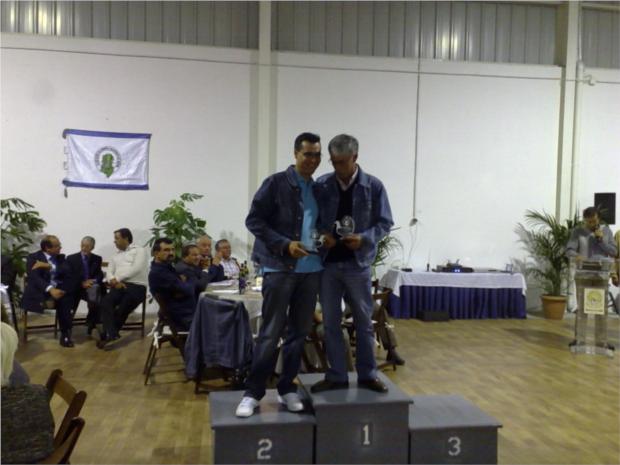 EU E O MEU AMIGO SILVEIRINHA A RECEBERMOS OS TROFÉUS ANILHA DE OURO E PRATA DE MEIO FUNDO