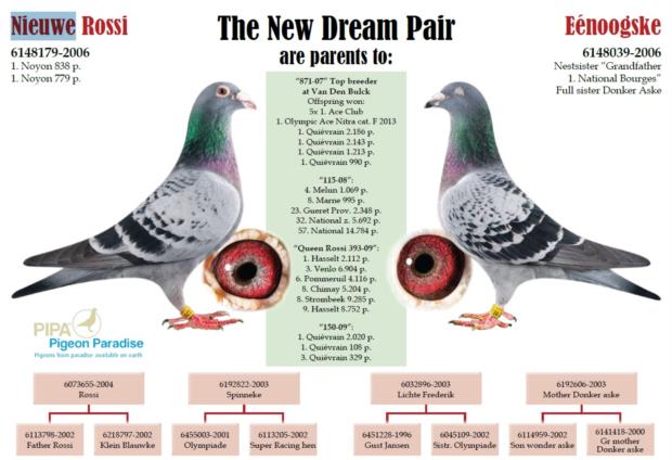 O DREAMPAIR de Leo Heremans, ou NEW DREAM PAIR. Os pombos mais rápidos para velocidade e meio-fundo da atualidade. O melhor, entre o melhor, dos pombos Heremans. Existem muito poucos pombos desta linha em Portugal. Temos o previlégio de ter alguns na nossa reprodução. São inúmeros os campeões descendentes deste casal...