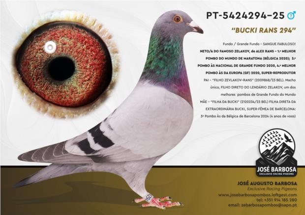 Um dos pombos em cedência, origem absolutamente , excepcional, BUCKI RANS 294” :