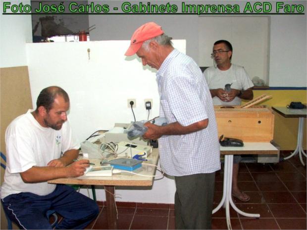 Paulo (Asas do Algarve, concorrente na Sociedade Columbófila de Faro) a apontar a terceira conquista do Campeonato Distrital de Fundo ACD Faro, acompanhado pelo Américo (manager).