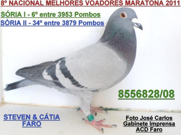 Arnaldo Estriga (M. Ermelinda Mendes Martins, com o pombal situado na Aldeia Columbófila de Faro), com o Pombo Vencedor Distrital ACD Faro da prova de Alcoleia Del Pinar, entre 3513 pombos participantes, constatado às 14:20:34, percorrendo os 649,261 Kms, a uma média de 1.473,69 m/minuto