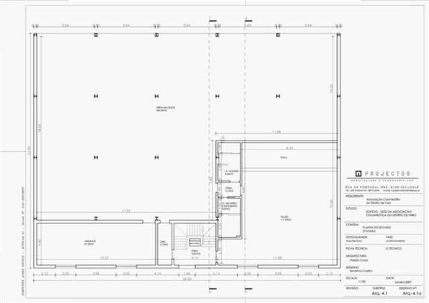 3 – Indicações adicionais – o concurso destina-se à construção da 1ª fase da sede da A.C.D.Faro, que consta da – parte 1 – construção da estrutura metálica da área multiusos com a área de 436 m2 – parte 2- construção de estrutura em betão armado da parte destinada a serviços, constituída por r/ chão e 1º andar, total 375 m2 ;