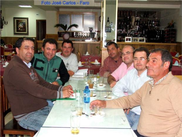 Fernando Laranjeira (Tesoureiro ACD Faro), Manuel Arrebola (Presidente FC Andaluzia), Rui Emídio (Presidente ACD Faro), José Carlos (Gabinete de Imprensa ACD Faro), Mário Teixeira (Vice-Presidente ACD Faro), Rogério Germano (Coordenador Conselho Técnico ACD Faro), Miguel e Rafael Marquez (FC Andaluzia) - Reunião de trabalho em Sevilha (13/04/2009)