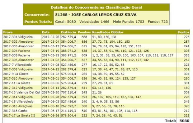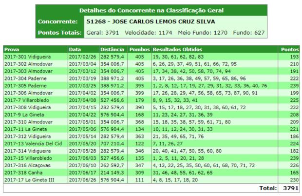 Resultados 2017 Grupo Columbofilo de Albergaria