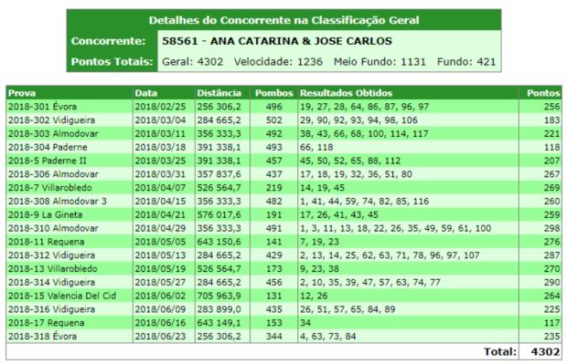 Resultados 2018 Grupo Columbofilo de Albergaria