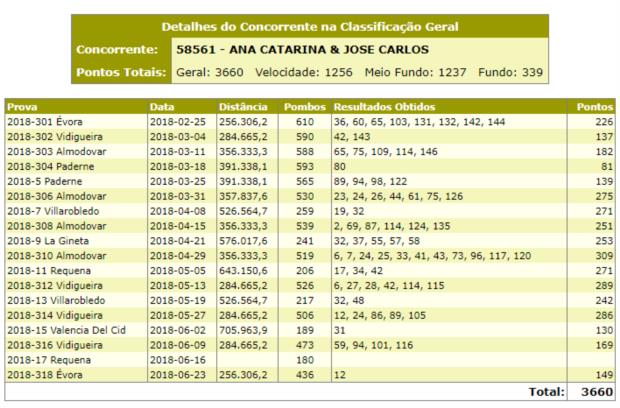 Resultados 2018 Grupo Columbofilo de Vale Maior