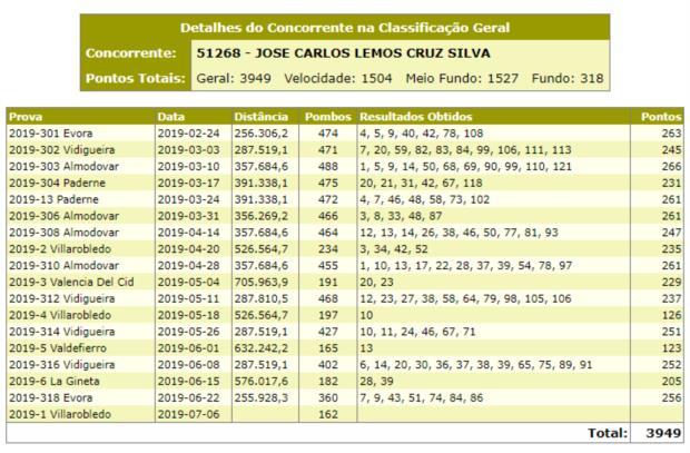 Resultados 2019 Grupo Columbofilo de Albergaria