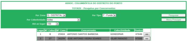 Resumo dos Resultados de 30259 - Jose Antonio Vieira Soares no âmbito Porto -> Zona 1
