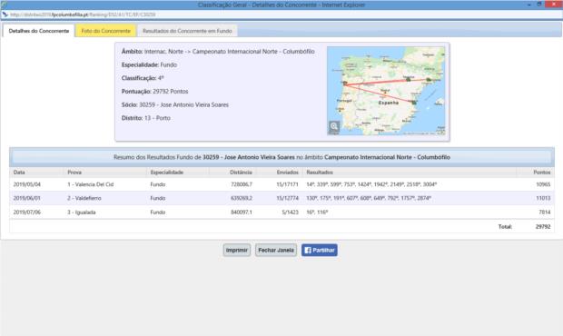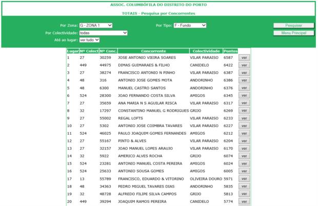 7º classificado da Geral entre 212 pombais com encestamentos a rondar os 5700 pombos nos nacionais e os 2000 nos fundos.
