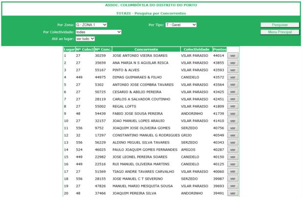 - Campeão da Geral da Zona 1 (Bloco 1 – Gaia) A.C.D.P. 201 pombais