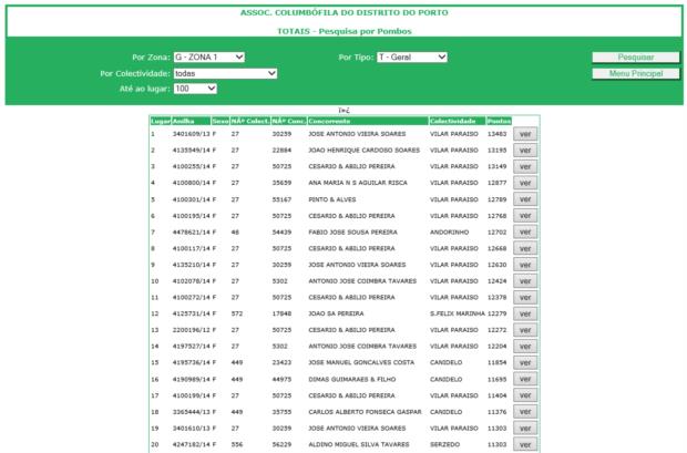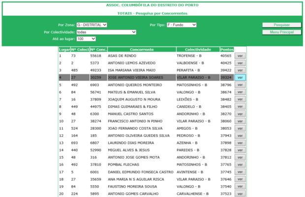 - 10 pombos nos primeiros 100 da Sociedade Columbófila Vilar do Paraíso. (Apenas Cesario & Abilio Pereira metem mais pombos nos primeiros 100)