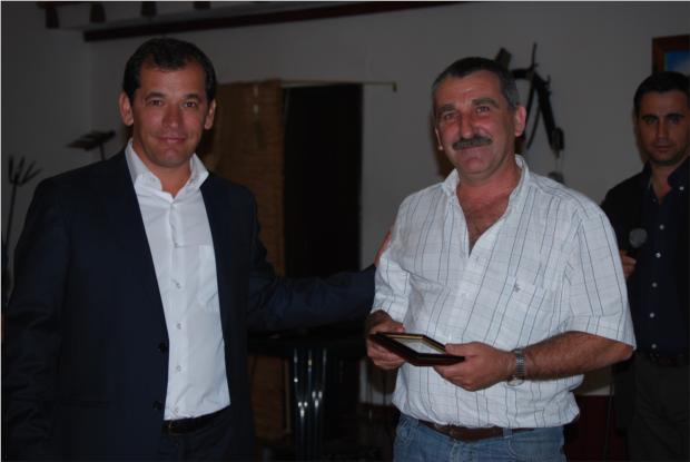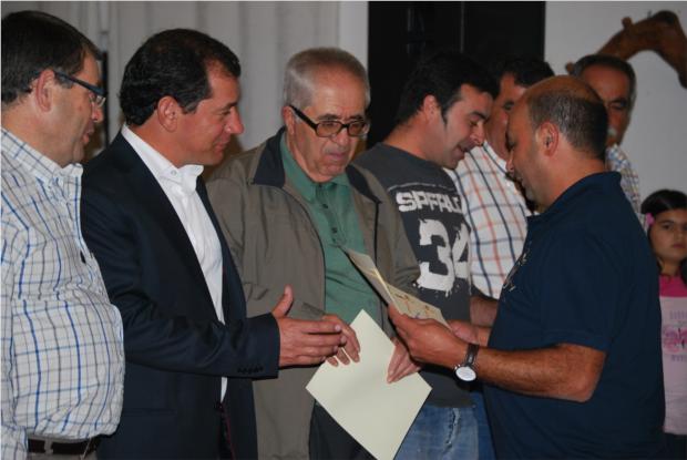 O AMIGO LUIS SERRANO ENTREGA PRÉMIO A ANTÓNIO BARROS (VICE PRESIDENTE ACDBEJA), AO CENTRO BRUNO HELENA (VICE PRESIDENTE ACDBEJA).