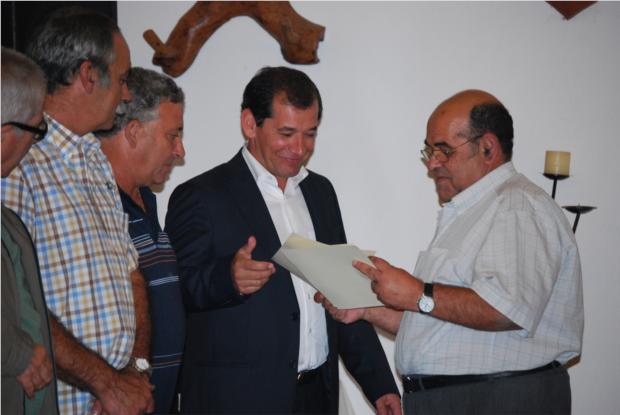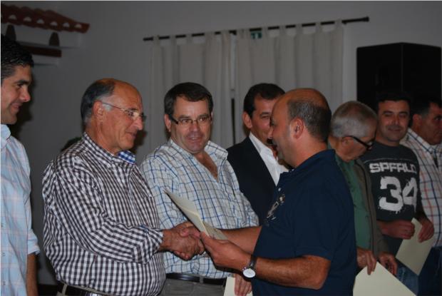 O AMIGO RUI EMIDIO A ENTREGAR OS PRÉMIOS DE FUNDO ZONA CENTRO/LESTE. JOSÉ HENRRIQUES DA COL. COL. DE SERPA, FOI O GRANDE CAMPEÃO. TAMBÉM É CAMPEÃO NACIONAL DE FUNDO. LUIS BRITO É VICE CAMPEÃO DE FUNDO NA MESMA ZONA.