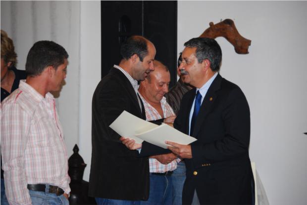 O DR. DAVID BARROS MADEIRA A ENTREGAR OS PRÉMIOS DE FUNDO, ZONA SUL. A FAMILIA MOURÃO FOI A GRANDE CAMPEÃ, A DUPLA DE ENTRADAS EM SEGUNDO.