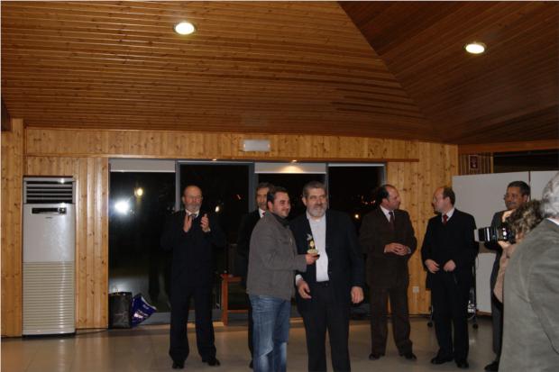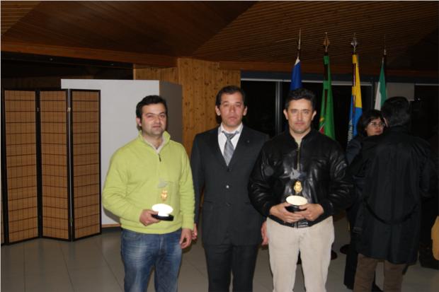 BRUNO HELENA A RECEBER O PRÉMIO DAS MÃOS DO VEREADOR DA CÂMARA DE GONDOMAR, FERNANDO PAULO, NA PRESENÇA DE DRº JOSÉ TERESO.
