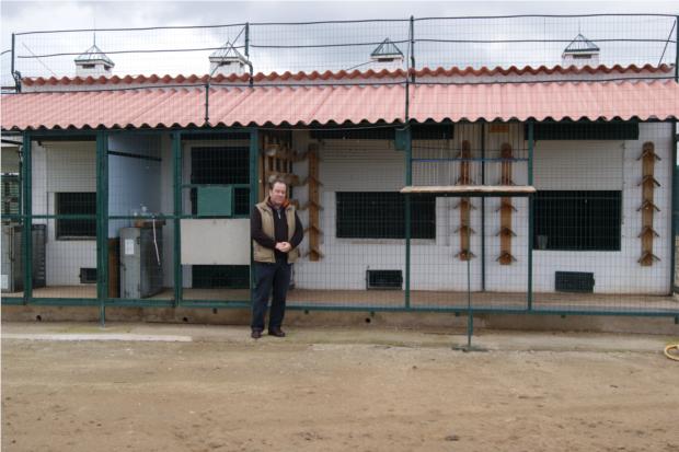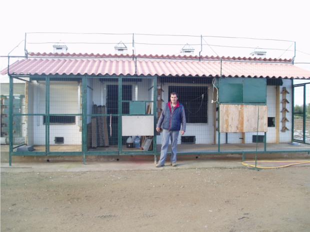 O amigo Ludgero junto da voliere dos Reprodutores