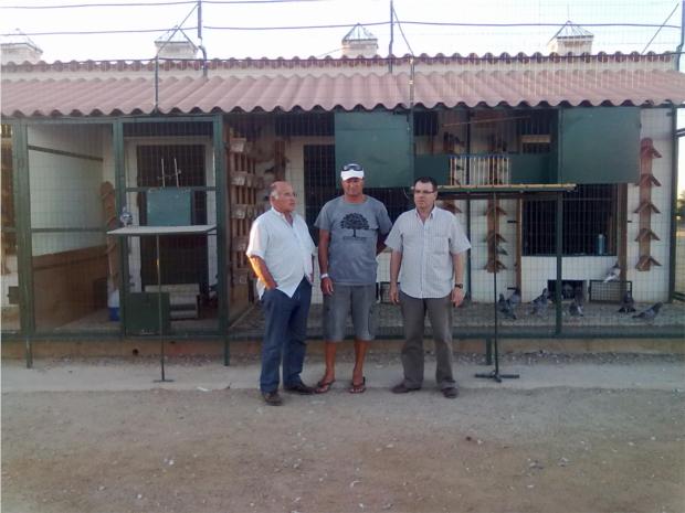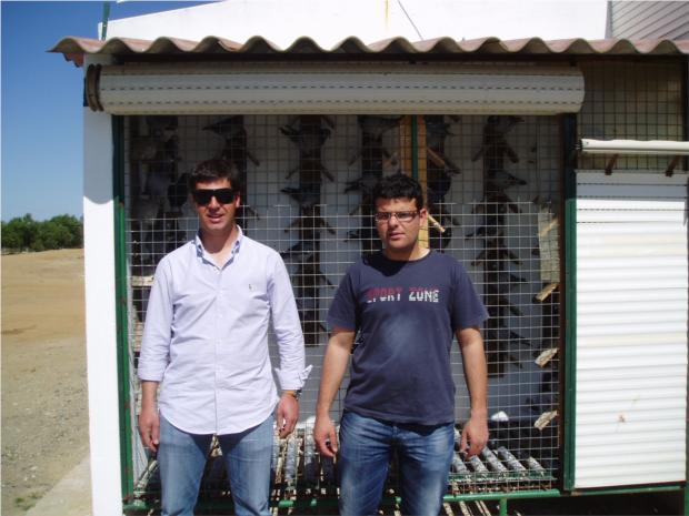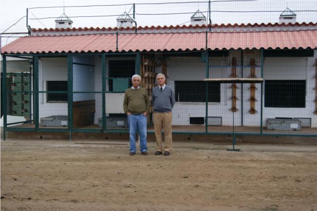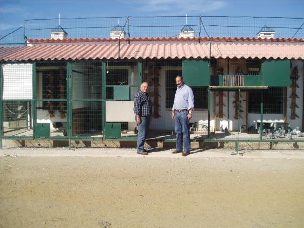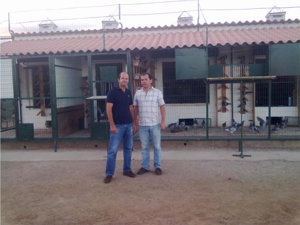 ANTÓNIO SERRANO E O SEU SÓCIO, JUNTO DOS MEUS POMBAIS DE VOADORES.