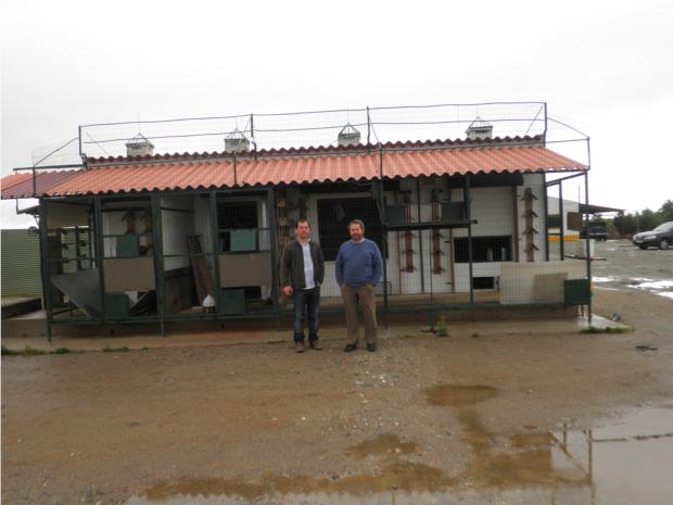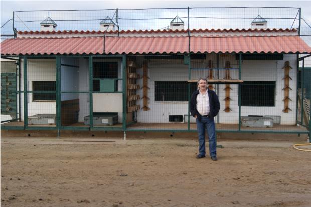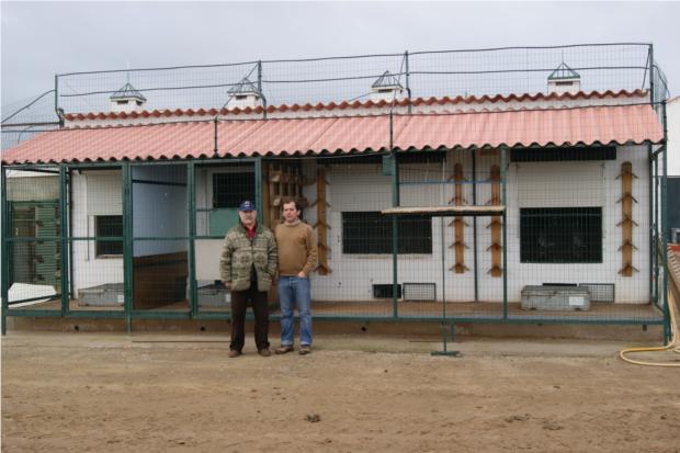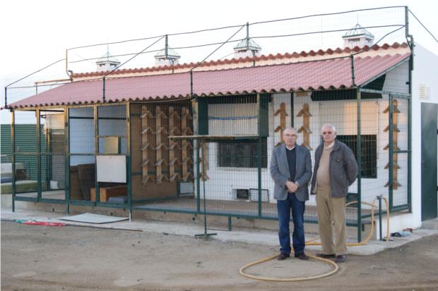 Os amigos Ludgero, e Carlos Mourão (actual Campeão Nacional de Fundo), junto da voliere das Fêmeas Voadoras.