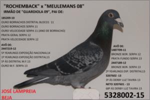 "ROCHEMBACK" EXCELENTE REPRODUTOR VARIOS FILHOS NA REPRODUÇÃO PAI DO: 2430286-12 4º POMBO ÁS GERAL DISTRITAL SANTARÉM 14 ANILHA DE PRATA GERAL RIACHOS 2014