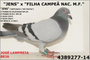 "FILHA DO "JENS 3177041-05" RUDI DE SAER 2º POMBO ÁS MEIO FUNDO WFL 2006 1º POMBO ÁS VELOCIDADE WFL 2009