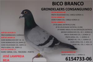 "BICO BRANCO" PAI DE: -8379221-08 ANILHA PRATA DE VELOCIDADE CABEÇA GORDA 11 - 8379312-08 ANILHA DE OURO FUNDO COLETIVIDADE CABEÇA GORDA 11 - 1480095-11 5º ÁS GERAL DISTRITAL13 (ZN) 6º ÁS VELOCIDADE DISTRITAL 13 (ZN) 3º POMBO ABSOLUTO NA EXPOSIÇÃO DISTRITAL ANILHA DE BRONZE BORRACHOS COLETIVIDADE DE CABEÇA GORDA 12 ANILHA DE PRATA YEARLINGS COLETIVIDADE DE CABEÇA GORDA 12 ANILHA DE PRATA GERAL COLETIVIDADE DE CABEÇA GORDA 13 ANILHA DE BRONZE VELOCIDADE COLETIVIDADE CABEÇA GORDA 13 ANILHA DE OURO GERAL COLETIVIDADE ZONA AZUL 2013 ANILHA DE OURO VELOCIDADE COLETIVIDADE ZONA AZUL 13 -185005- 10 ANILHA DE OURO FUNDO COLETIVIDADE CABEÇA GORDA 13 ANILHA DE OURO FUNDO COLETIVIDADE ZONA AZUL 13 AVÔ DO 209-10 ANILHA DE OURO BORRACHOS DISTRITAL BLOCO1 11 OURO VELOCIDADE COL. SERPA 11 OURO BORRACHOS COL. SERPA 11 PRATA GERAL COL. SERPA 12 PRATA VELOCIDADE COL. SERPA 12 BISAVÔ: - 1487709-11 ANILHA BRONZE BORRACHOS SERPA 12 ANILHA PRATA FUNDO SERPA 13 2447219-12 - 5ª YEARLINGS NA EXPOSIÇÃO NACIONAL14 - 1ª YEARLINGS NA EXPOSIÇÃO DISTRITAL13 - 5º ÁS DISTRITAL M.F.13 (ANO DE BORRACHO) - ANILHA DE OURO MEIO FUNDO SERPA 13 (ANO DE BORRACHO) 2447189-12 - ANILHA BRONZE BORRACHOS SERPA 13 - 2ª YEARLINGS NA EXPOSIÇÃO DISTRITAL13 3207602 -13 3º POMBO ÁS DERBY LUZ TAVIRA 13
