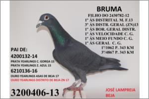 "PEDRADO DE RUI & PAULO CAMPOS" PAI: 2430212-12 4º POMBO ÁS GERAL DISTRITAL Z. NORTE ANILHA OURO GERAL C. GORDA 15 ANILHA DE OURO VELOCIDADE C. GORDA 15. ANILHA DE PRATA GERAL Z. AZUL 15 ANILHA OURO VELOCIDADE Z. AZUL 15 320454-13 ANILHA DE OURO GERAL BLOCO 4 ANILHA PRATA M. FUNDO BLOCO 4 ANILHA DE BRONZE M. FUNDO ZONA SUL ANILHA OURO GERAL COL. OURIQUE 15 ANILHA DE OURO MEIO FUNDO COL. OURIQUE 15 4º ÁS VELOCIDADE BLOCO 4 DISTRITO DE BEJA 16 ANILHA DE OURO VELOCIDADE COL. OURIQUE 16 ANILHA DE BRONZE GERAL COL. OURIQUE 16 1º S. AMALIA 364 P 1º P. BUENA 146 P. 1º P. BUENA 316 P. 1º MANZANARES 271 P.
