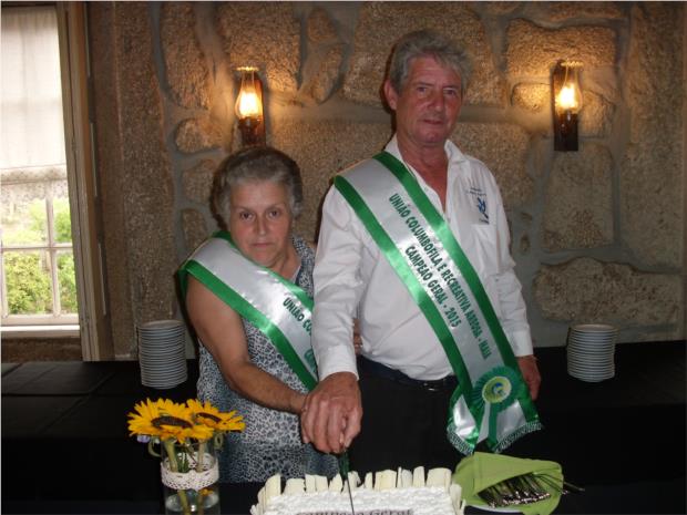 António Lemos Azevedo e a sua Esposa Carmén Azevedo a partir o bolo de Campeão