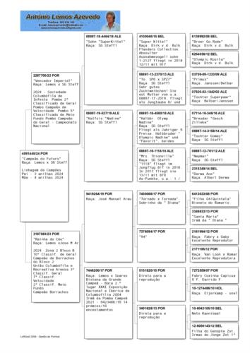 Este borracho é descendente direto de uma das linhagens mais prestigiadas e vencedoras da columbofilia moderna. Os pais, ambos pombos campeões, fazem parte de uma dinastia de alta performance, sendo o consagrar de uma rigorosa seleção voltada para velocidade e resistência.