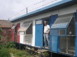 Este é constituído em cimento com a frente em rede, excepto na parte dos ninhos.