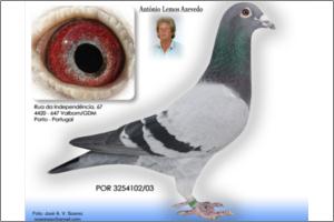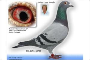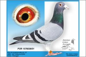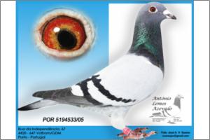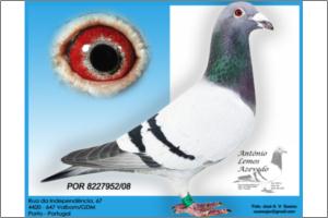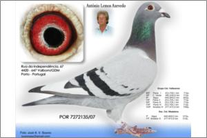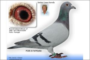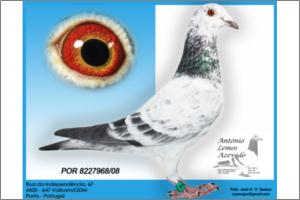 | Pai: 3557-05-1500/05 ALE | Mãe: 8227968/08 POR | Raça: Jan van de Pasch Pai do 7272543/07 POR 2009 Campeão Geral,Velocidade e Meio Fundo Grupo Columbófilo Valboense