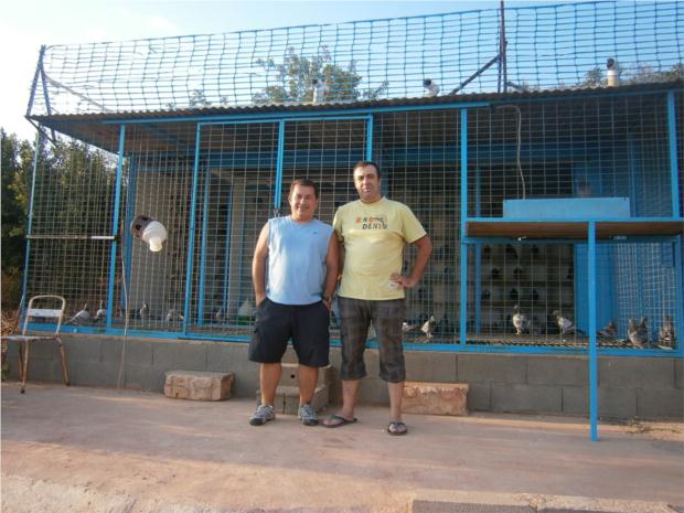 Rui Lobato e Nelson Botinas em frente ao pombal da socieade NLRA - Racing Pigeons Team