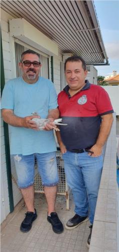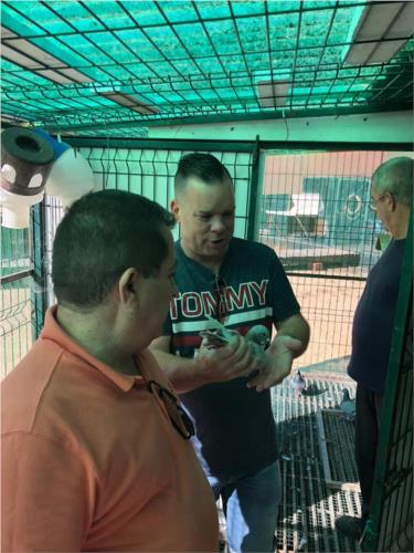 Visita do amigo Paulo.Rocha, com a nova aquisição para sua reprodução, a "30" filha do nosso Casal Base (Van Haute), irmã e tia de inúmeros craques voadores.