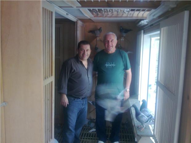 O nosso amigo Marcel Sangers novamente de visita ao nosso pombal. Nesta foto com Manuel Rodrigues (pai de Rui Lobato). Our friend Marcel Sangers visiting again our lofts with Lobato's father (Manuel Rodrigues).