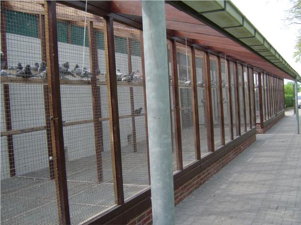 Vista dos pombais de competção de Marcel Sangers (machos e fêmeas adultos)