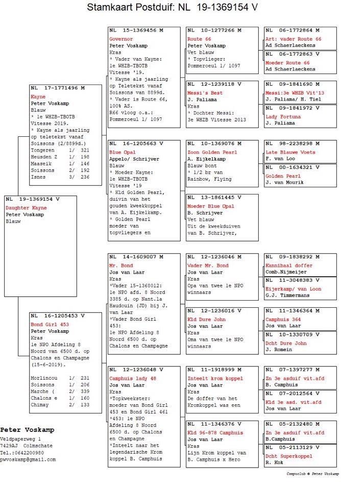 Apresentamos a nossa única aquisição no decorrente ano de 2019, em mais uma criteriosa aquisição para a nossa reprodução. Filha do super velocista “Kayne” Pombo Campeão Nacional de Velocidade da Holanda em 2019 e da “Bond Girl 453” outra craque voadora de Peter Voskamp.